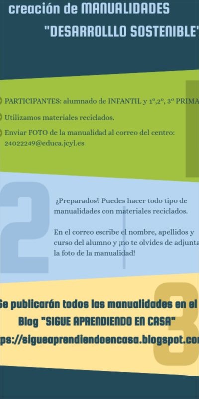 Se publicarán todos las manualidades en el Blog "SIGUE APRENDIENDO EN CASA" https://sigueaprendiendoencasa.blogspot.com/