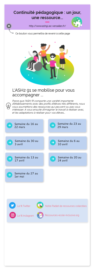 La page continuité pédagogique du site ASH91
