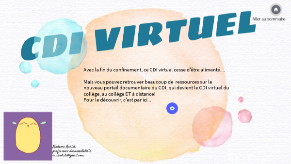 Avec la fin du confinement, ce CDI virtuel cesse d'être alimenté.... Mais vous pouvez retrouver beaucoup de ressources sur le nouveau portail documentaire du CDI, qui devient le CDI virtuel du collège, au collège ET à distance! Pour le découvrir, c'est par ici...