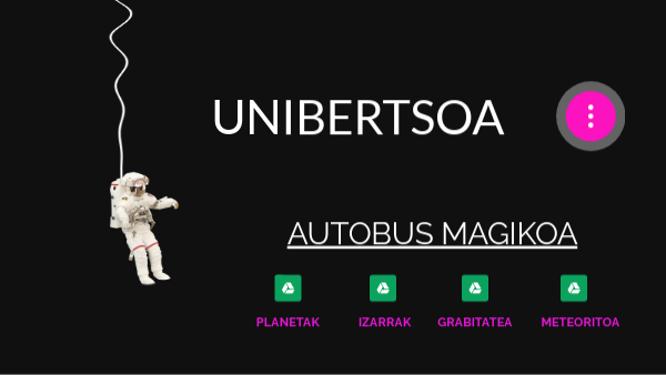 1. ZER DA UNIBERTSOA: BIG BANG TEORIA 2. GALAXIAK: ESNE BIDEA 3. EGUZKI SISTEMA 4. PLANETAK 5. IZARRAK: EGUZKIA 6. LURRA 7. ROTAZIOA ETA TRASLAZIOA