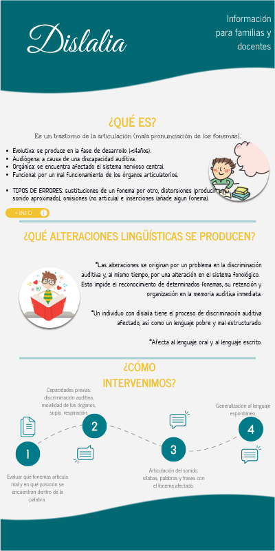 *Las alteraciones se originan por un problema en la discriminación auditiva y, al mismo tiempo, por una alteración en el sistema fonológico. Esto impide el reconocimiento de determinados fonemas, su retención y organización en la memoria auditiva inmediata.*Un individuo con dislalia tiene el proceso de discriminación auditiva afectado, así como un lenguaje pobre y mal estructurado. *Afecta al lenguaje oral y al lenguaje escrito.