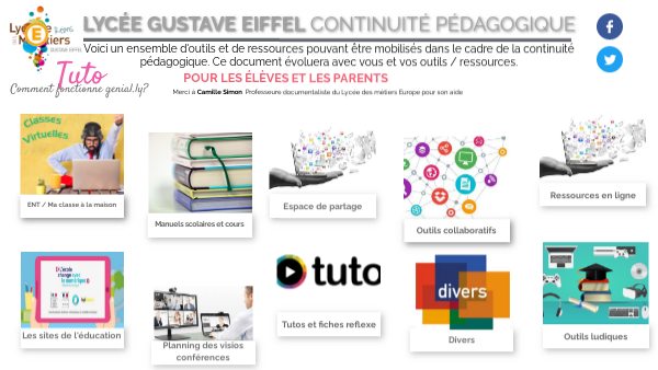 Voici un ensemble d'outils et de ressources pouvant être mobilisés dans le cadre de la continuité pédagogique. Ce document évoluera avec vous et vos outils / ressources.