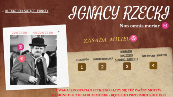 UWAGA! Z POSTACIĄ RZECKIEGO ŁĄCZY SIĘ TEŻ WAŻNY MOTYW MARIONETEK /THEATRUM MUNDI/ - BĘDZIE TO PRZEDMIOT KOLEJNEJ LEKCJI!
