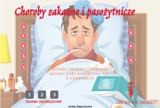 Dotknij każdej czerwonej kropki, żeby dowiedzieć się o chorobach