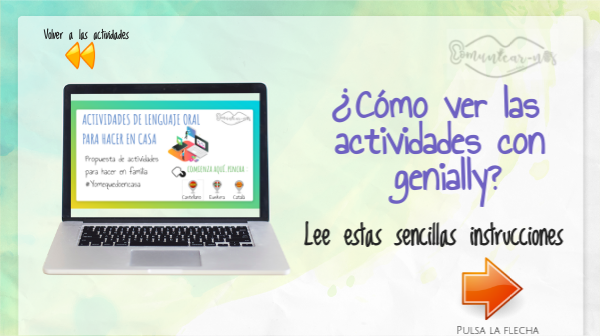 En genially irán apareciendo algunos elementos, que habrá que pinchar para continuar con la actividad concreta, en todos ellos aparecerá un texto o una mano que indique que hay que pinchar en ese lugar