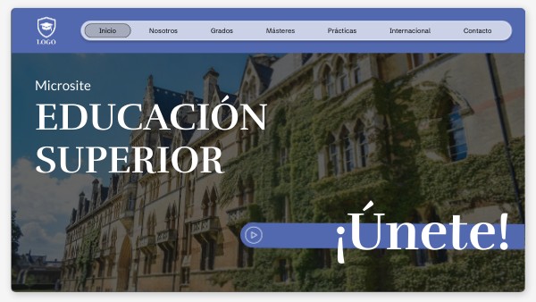 Una plantilla gratuita de Microsite Educación Superior perfecta para orientar a los estudiantes en su camino académico. Personalízala con tus colores, tu logotipo y los textos e imágenes que desees y haz que tu facultad o institución destaquen.