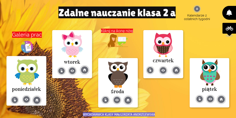 Drogie dzieci! Pod przyciskami z cyframi powyżej znajdziecie wcześniej przeprowadzone lekcje. Aby zobaczyć kalendarz z ostatniego tygodnia kliknij na cyfrę 9.