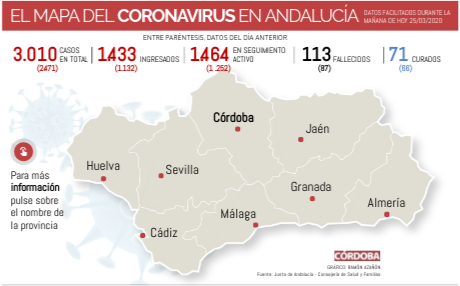 El mapa del Coronavirus en Andalucía 25/03/2020