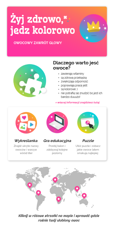 Kliknij w różowe strzałki na mapie i sprawdź gdzie rośnie twój ulubiony owoc