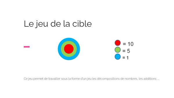 Ce jeu permet de travailler sous la forme d'un jeu les décompositions de nombres, les additions ....