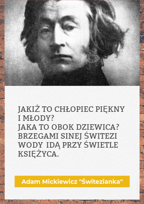 Jakiż to chłopiec piękny i młody? Jaka to obok dziewica? Brzegami sinej Świtezi wody Idą przy świetle księżyca.