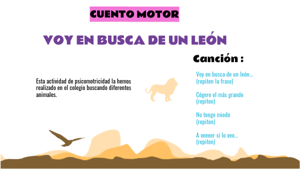 Voy en busca de un león...(repiten la frase) Cógere el más grande (repiten) No tengo miedo (repiten) A veeeer si lo veo... (repiten)
