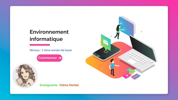 Yasmine est une élève en 7éme de base. Son professeur d'informatique lui a demandé de faire une recherche sur l'environnement informatique. Aidez-la en réalisant les activités dans cette présentation