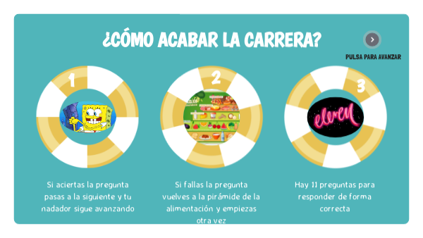 Si aciertas la pregunta pasas a la siguiente y tu nadador sigue avanzando