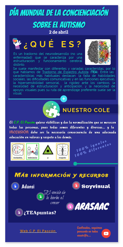 El C.P. El Pascón quiere visibilizar y dar la normalización que se merecen todas las personas, pues todas somos diferentes y diversas... y la INCLUSIÓN debe ser la necesaria consecuencia de una adecuada educación en valores y respeto a los demás.