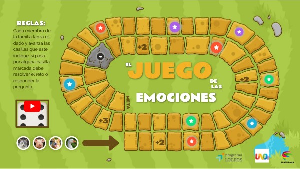 Cada miembro de la familia lanza el dado y avanza las casillas que este indique. sí pasa por alguna casilla marcada debe resolver el reto o responder la pregunta..