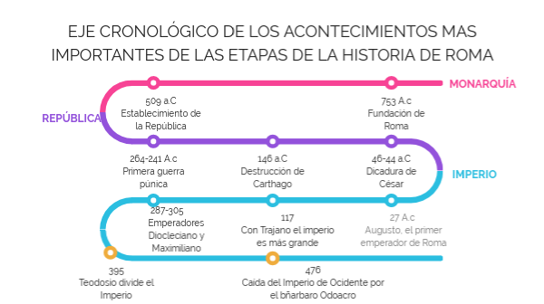 EJE CRONOLÓGICO DE LOS ACONTECIMIENTOS MAS IMPORTANTES DE LAS ETAPAS DE LA HISTORIA DE ROMA