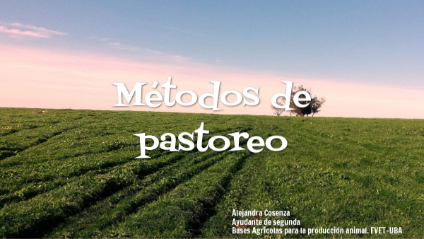 Método indirecto Pastoreo cero, mecánico o solling Métodos directos Pastoreo permanente o continuo tradicional Pastoreo permanente controlado Pastoreo rotativo Pastoreo racional