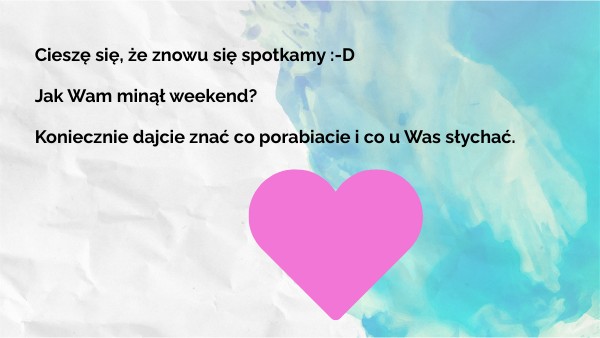 Cieszę się, że znowu się spotkamy :-D Jak Wam minął weekend? Koniecznie dajcie znać co porabiacie i co u Was słychać.