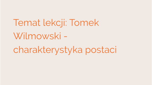 Temat lekcji: Tomek Wilmowski - charakterystyka postaci