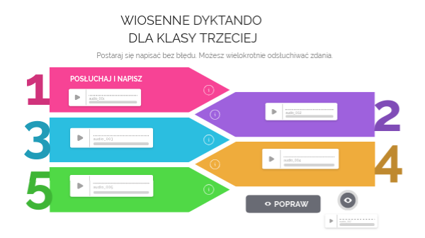 Postaraj się napisać bez błędu. Możesz wielokrotnie odsłuchiwać zdania.
