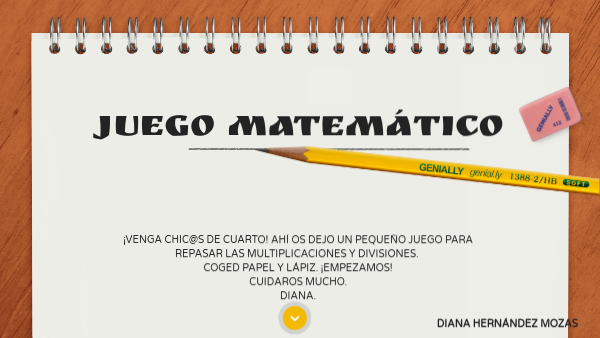 ¡VENGA CHIC@S DE CUARTO! AHÍ OS DEJO UN PEQUEÑO JUEGO PARA REPASAR LAS MULTIPLICACIONES Y DIVISIONES. COGED PAPEL Y LÁPIZ. ¡EMPEZAMOS!CUIDAROS MUCHO. DIANA.