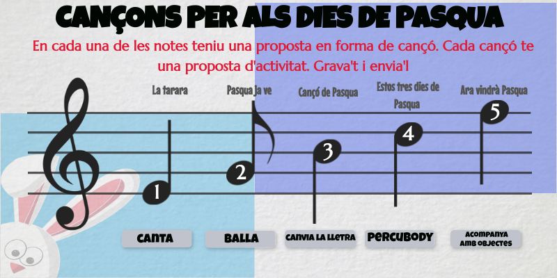 En cada una de les notes teniu una proposta en forma de cançó. Cada cançó te una proposta d'activitat. Grava't i envia'l