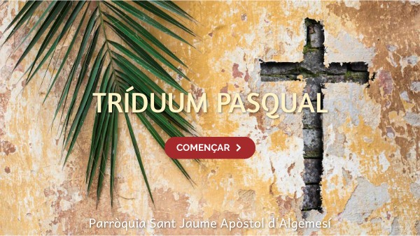 Des de la parròquia hem creat aquesta pàgina interactiva per tal de fer-te possible viure el Tríduum Pasqual a casa d'una forma interactiva, especialment si ho fas en companyia de xiquets i joves (o ets un d'ells, clar). En la següent pàgina trobaràs un mapa de la ciutat de Jerusalem que et permetrà viatjar en l'espai i el temps als llocs i moments on tingueren lloc els diferents fets que marquen el Tríduum. En les pàgines trobaràs diferents icones que et portaran a les lectures dels Evangelis, contextualització, cants que t'ajudaran a posar-te en situació i de vegades algun element més interactiu. Tanmateix també trobaràs una correlació dels fets que ocorreguren en temps de Jesús amb la celebració que en fem actualment. Pren-te el teu temps per a llegir i meditar les lectures com si ho feres a les celebracions del Dijous i Divendres Sant així com el Diumenge de Pasqua. Esperem que t'agrade i gaudisques de l'experiència. Units en la pregària.