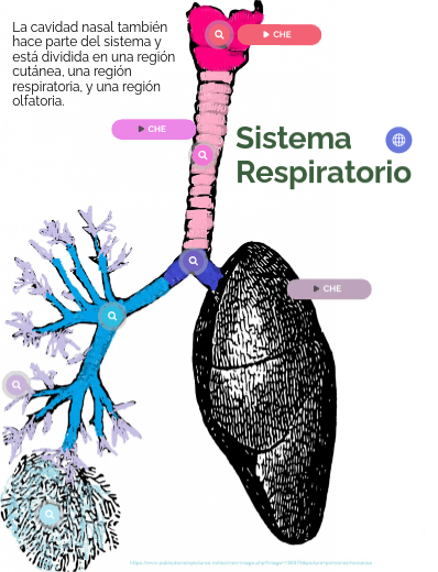 La cavidad nasal también hace parte del sistema y está dividida en una región cutánea, una región respiratoria, y una región olfatoria.