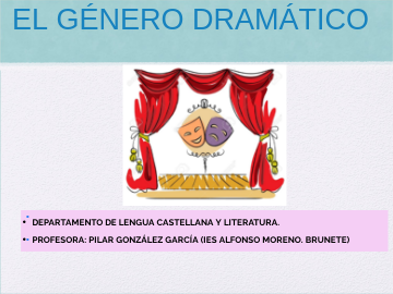 El género dramático es aquel en el que incluimos las obras literarias en las que el autor desaparece y los hechos se presentan a través del diálogo de unos personajes, que son representados por los actores, en un escenario ambientado adecuadamente.