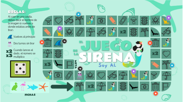 Al caer en una casilla, debes decir el nombre de la imagen (o vuelves a donde estabas antes de tirar). Vuelves al principio Dos turnos sin tirar Cuando lances el dado, el número se multiplica