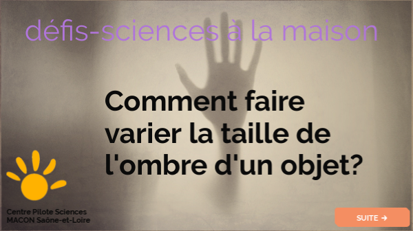 Dans ce défi, tu vas chercher comment faire varier la taille de l’ombre d’un objet.Mais avant tu vas commencer par te familiariser avec les notions d’ombre et de lumière.