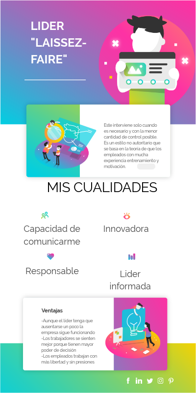 -Aunque el líder tenga que ausentarse un poco la empresa sigue funcionando -Los trabajadores se sienten mejor porque tienen mayor poder de decisión -Los empleados trabajan con más libertad y sin presiones