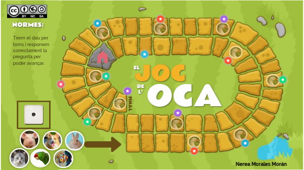 Aquí teniu el joc de l'oca interactiu. Té preguntes en cada casella que caldrà respondre per poder avançar. Està en català, castellà i anglés. A jugar!