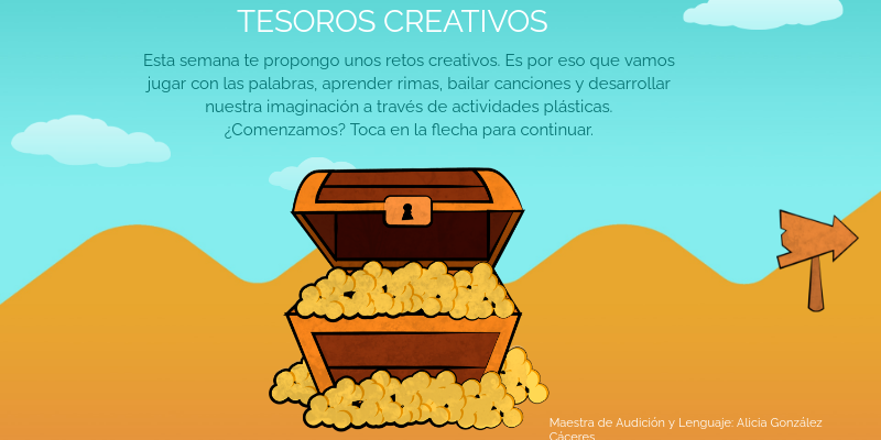 Esta semana te propongo unos retos creativos. Es por eso que vamos jugar con las palabras, aprender rimas, bailar canciones y desarrollar nuestra imaginación a través de actividades plásticas.¿Comenzamos? Toca en la flecha para continuar.