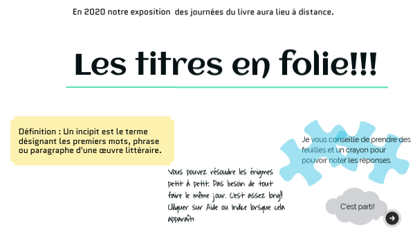 Un grand merci à tous les élèves qui ont participé au choix des incipits. À partir de vos phrases, j'ai crée ces 60 petits jeux et énigmes. Vous pouvez retrouver les autres incipits dans la vidéo.