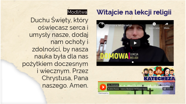 Duchu Święty, który oświecasz serca i umysły nasze, dodaj nam ochoty i zdolności, by nasza nauka była dla nas pożytkiem doczesnym i wiecznym. Przez Chrystusa, Pana naszego. Amen.