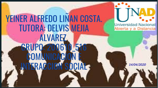 YEINER ALFREDO LIÑAN COSTA. TUTORA: DELVIS MEJIA ALVAREZ GRUPO: 200610_516 COMUNICACION E INTERACCION SOCIAL