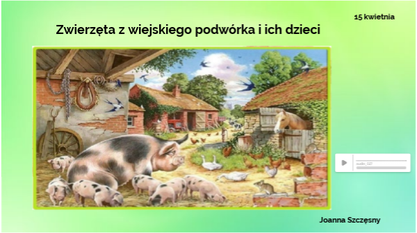 Zobacz film o zwierzętach mieszkajacych na wsi. Rozwiąż 3 zadania.