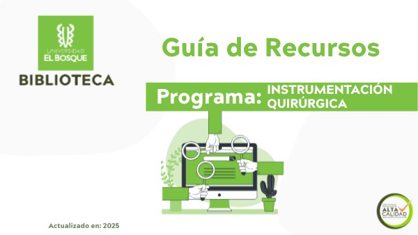 Comprometidos con el apoyo a la academia e investigación, así como con el correcto uso de los recursos, la Biblioteca ha diseñado esta presentación para que usted conozca los recursos que la Universidad El Bosque tiene a disposición para su programa académico. Se han identificado dentro de cada recurso, los contenidos correspondientes a su área de conocimiento, de esta manera podrá conocer cuáles son los contenidos de mayor afinidad con su labor académica. Igualmente, en este documento explicamos diversos canales de comunicación digital que ha dispuesto la Biblioteca, no solo para atender las dudas, sino para continuar los procesos de desarrollo de habilidades informacionales a través del Programa Integral de Formación de Biblioteca (.PIF)