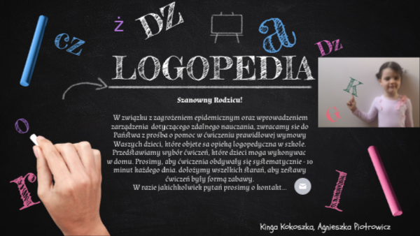 Szanowny Rodzicu! W związku z zagrożeniem epidemicznym oraz wprowadzeniem zarządzenia dotyczącego zdalnego nauczania, zwracamy sie do Państwa z prośba o pomoc w ćwiczeniu prawidłowej wymowy Waszych dzieci, które objete sa opieką logopedyczna w szkole. Przedstawiamy wybór ćwiczeń, które dzieci moga wykonywac w domu. Prosimy, aby ćwiczenia obdywały się systematycznie - 10 minut każdego dnia. dołożymy wszelkich starań, aby zestawy ćwiczeń były formą zabawy.W razie jakichkolwiek pytań prosimy o kontakt...