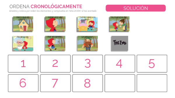 Arrastra y coloca por orden los elementos y comprueba en 'SOLUCIÓN' si has acertado