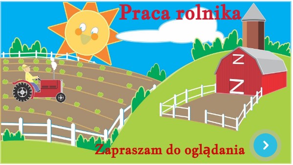 Rolnik zajmuje się uprawą pola. Sadzi owoce, warzywa, sieje zboże. Pamiętacie temat o zwierzętach z wiejskiego podwórka? Wielu rolników hoduje również zwierzęta. Codziennie rano doglądają swoje zwierzęta, karmią je, czyszczą, wyprowadzają na pastwisko.