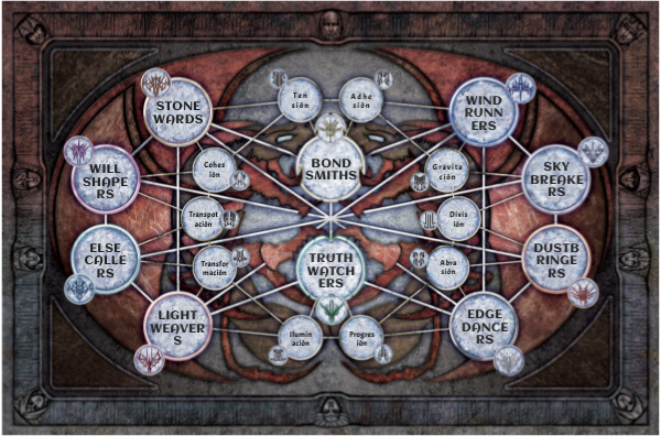 Órdenes de los caballeros radiantes con sus símbolos y sus potencias.