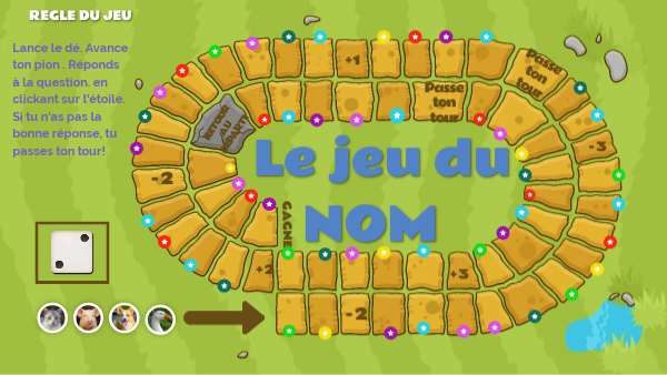 Lance le dé. Avance ton pion . Réponds à la question. en clickant sur l'étoile. Si tu n'as pas la bonne réponse, tu passes ton tour!