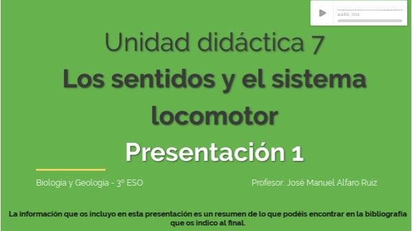 Unidad didáctica 7 Los sentidos y el sistema locomotor Presentación 1