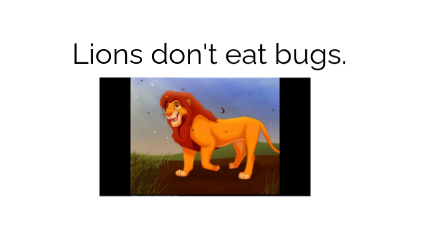 Poprawne odpowiedzi. 1.Frogs eat bugs. 2. Antelopes don't eat meat. 3.Monkeys eat fruit. 4.Giraffes don't eat fruit. 5.Lions don't eat bugs. A teraz przepisz te zdania pod tematem lekcji. Lesson T: Lions don't eat bugs.