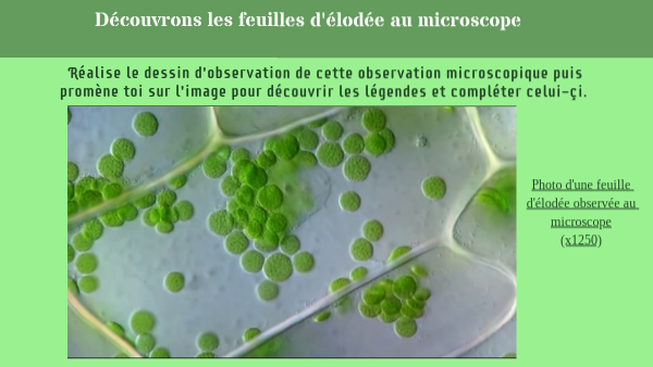 Photo d'une feuille d'élodée observée au microscope (x1250)