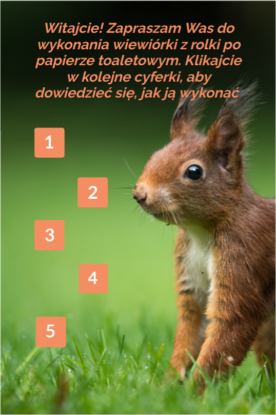 Witajcie! Zapraszam Was do wykonania wiewiórki z rolki po papierze toaletowym. Klikajcie w kolejne cyferki, aby dowiedzieć się, jak ją wykonać