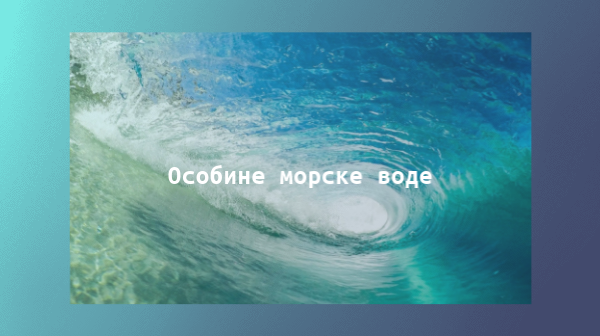 Разликујемо хемијска и физичка својства морске воде.Хемијска: хемијски састав воде и салинитет. Физичка: температура воде, боја, провидност. Кретање морске воде: таласи, плима и осека и морске струје.